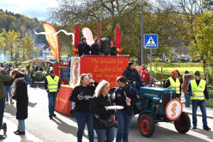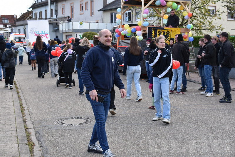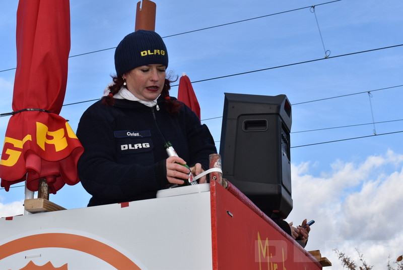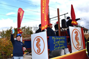 Bei der Aufstellung froren wir zwar noch, aber im Verlaufe des Umzugs, kam sogar kurzzeitig die Sonne etwas raus und unsere vielen Kinder verteilten fleißig ihre Streuartikel und Getränke unter den zahlreichen Zuschauern.