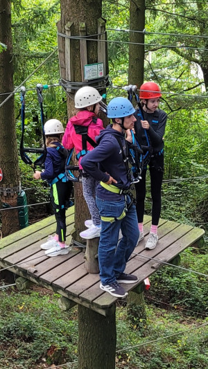 Am vergangenen Samstag unternahmen wir mit 44 Kindern und 11 Betreuern einen spannenden Ausflug in den Hochseilgarten nach Wald-Michelbach. Die Anreise verlief reibungslos, und nach einer professionellen Einweisung durch das Kletterwald-Team machten sich die Kinder in kleinen Gruppen auf den Weg, die unterschiedlichen Parcours zu erkunden.